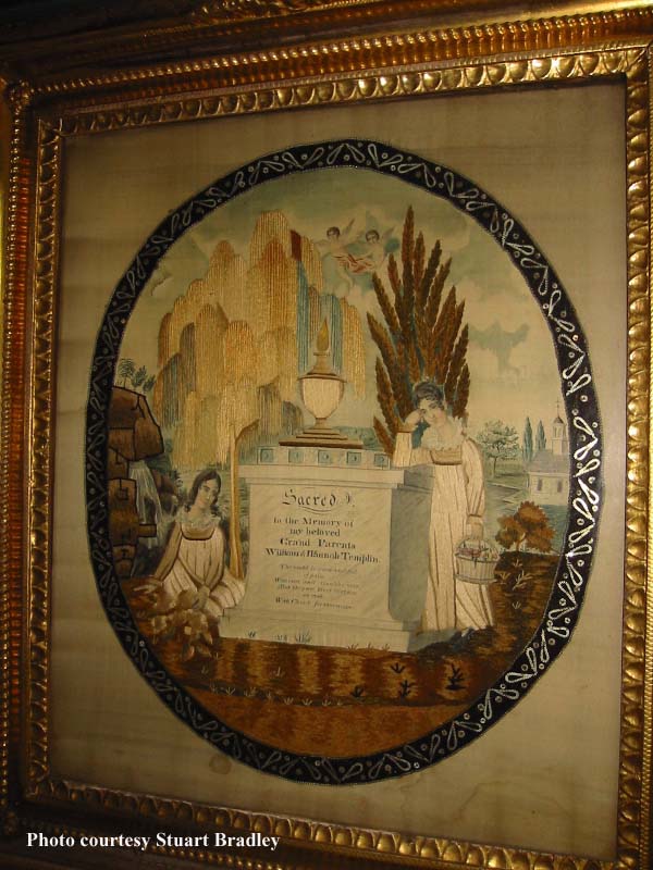 This memorial was created around 1850 by Catherine Hannaette Jarden, granddaughter of William and Hannah Templin. The memorial is now in the possession of her grandson, Stuart Bradley, Jr.