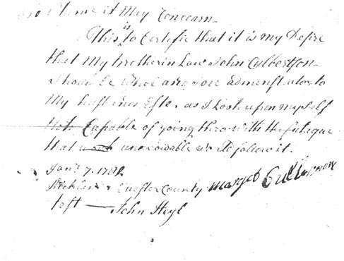 Samuel Culbertson Estate, 1782