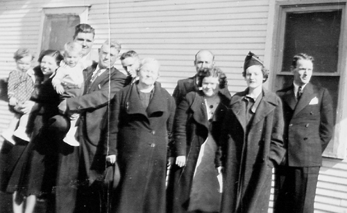 1937 family photo. Left-to-right: Arlene Vestal (baby), Archie, Neal Jackson (baby), J. V. Vestal, James Aden Branaman (father), Dale, Anna Susan (mother), Loyd Jackson, Nestella, Jackie, Glen.