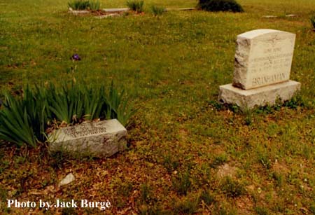 J. W. and Minerva Branhaman are buried side-by-side in the Lonesome Dove Baptist Church cemetery. Morgan's grave is adjacent to their headstone by the irises. The church is located on Lonesome Dove Road in a rural community just west of Grapevine, Texas.